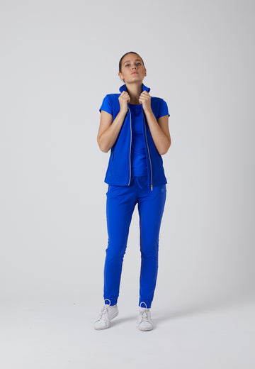 Full support for cool days promises our cobalt blue thermal sports and Tennis vest Eco for women and girls. The cuddly soft fabric is thermally insulating and yet maximally breathable. The quick-drying and odor-neutralizing Tennis vest is made of 86% recycled functional fibers obtained from fishing nets and plastic scraps. As a functional vest, it is also suitable for tennis as well as for jogging or golf thanks to its antibacterial coating. A sustainable sports vest that will enchant you in the long term.